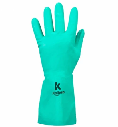 Luva de proteção, confeccionada 100% em borracha nitrílica, sem forro interno, acabamento clorinado, palma antiderrapante. Acabamento do punho reto